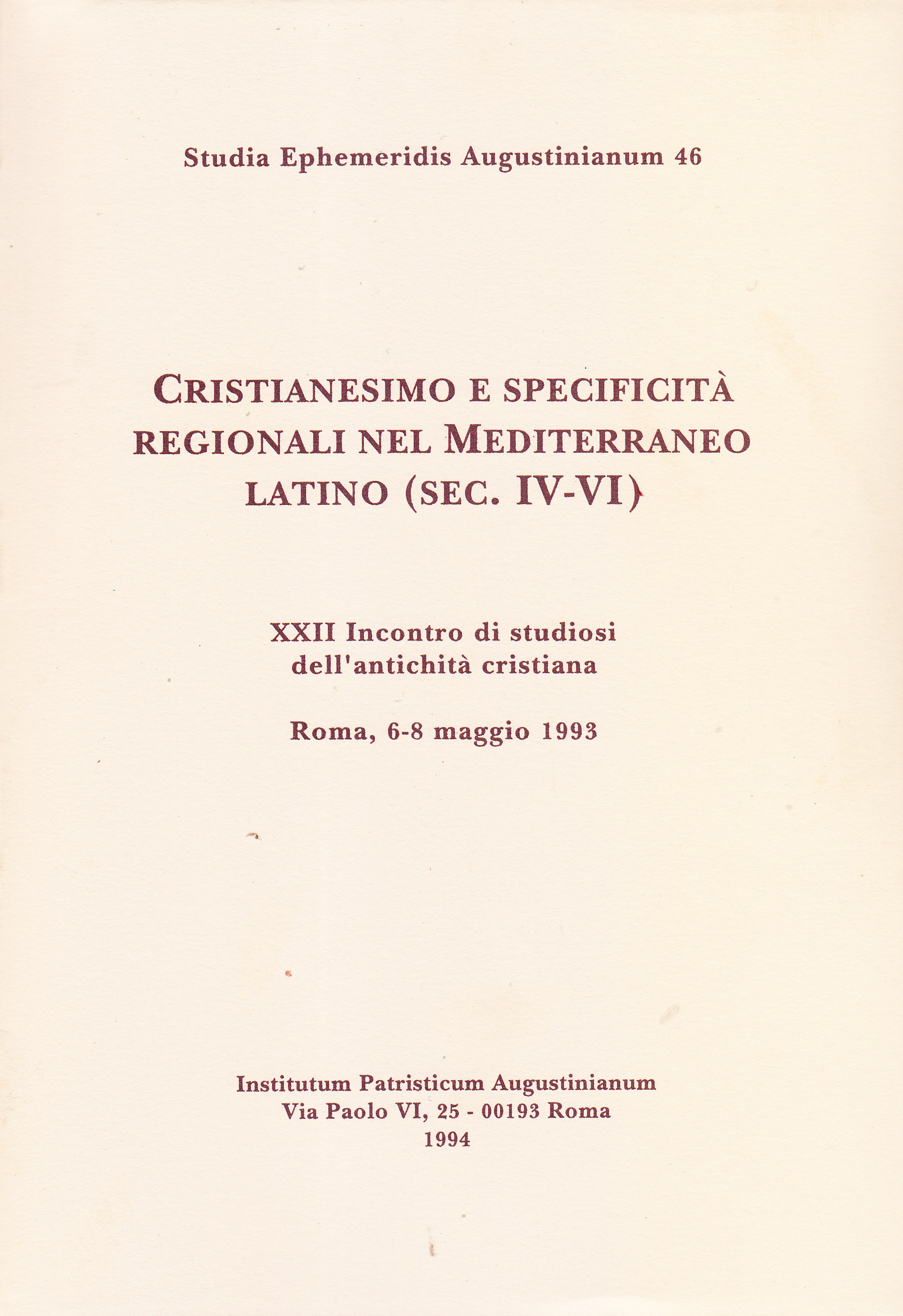 XXII Incontro di studiosi dell'antichità cristiana (Roma, 6-8 maggio 1993)