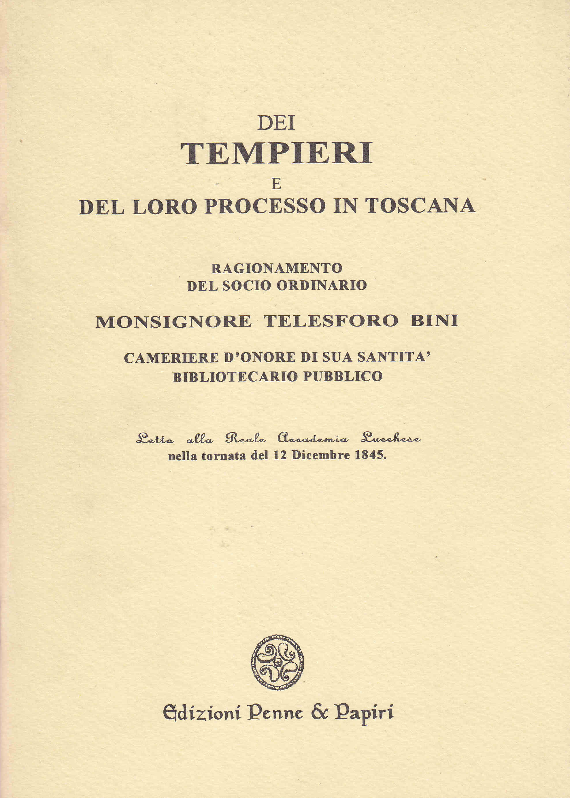 TITOLO/DENOMINAZIONE: Dei tempieri e del loro processo in Toscana