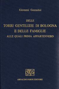 «Le torri gentilizie che…s'ergono…in Bologna…rappresentano…l'epoca che comprende i secoli XII e XIII». L'importante e interessantissimo lavoro si apre con un'introduzione generale sulle tante torri bolognesi di cui si ha notizie e dell'epoca "risorgimentale" in cui esse sorsero. Seguono, in ordine alfabetico, i nomi delle famiglie a cui le torri appartennero con i relativi accadimenti storici e le motivazioni delle numerose costruzioni. Completa l'opera un'importante e ampia raccolta di documenti.