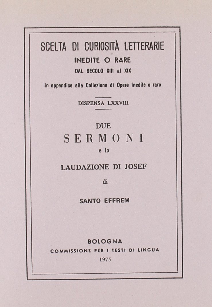 Alcune delle opere della vasta produzione scritta di Sant'Efrem il Siro (306 - 373). Scrittore della chiesa di Siria, fu grande oratore e poeta, tanto da essere definito "l'arpa dello Spirito Santo".