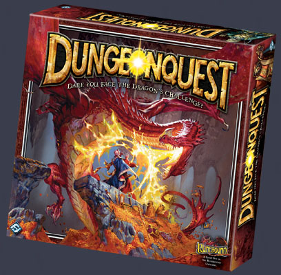 DungeonQuest is a re-imagining of the classic board game of dungeon exploration for 1-4 players. Set in the vibrant fantasy realm of Terrinoth (first popularized by Runebound), DungeonQuest retains the peril, tension, and brutality of the beloved original game while updating both mechanical and thematic elements. Players take on the roles of brave (or foolish) heroes willing to brave the legendary dangers of Dragonfire Dungeon. Fortune awaits those able to venture into the dragon’s lair...