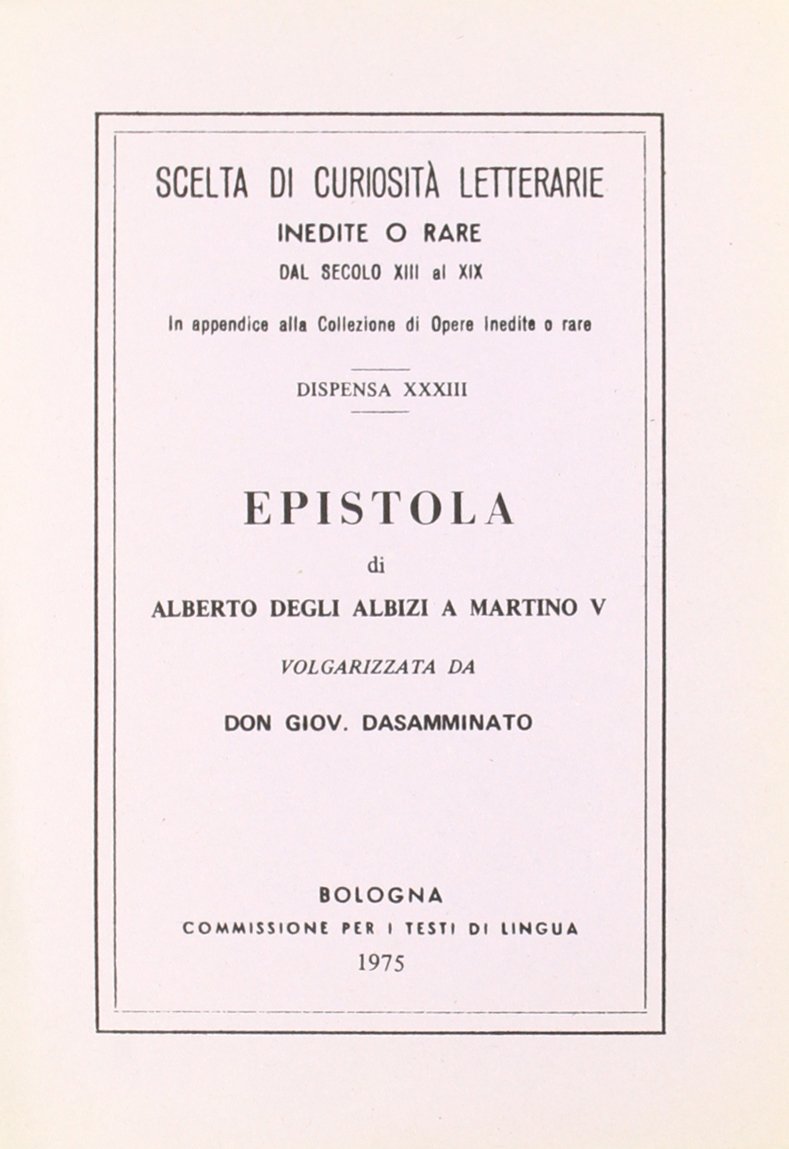 Lettera di Alberto degli Albizi, rimatore del XIV secolo, a papa Martino V (1368 – 1431).