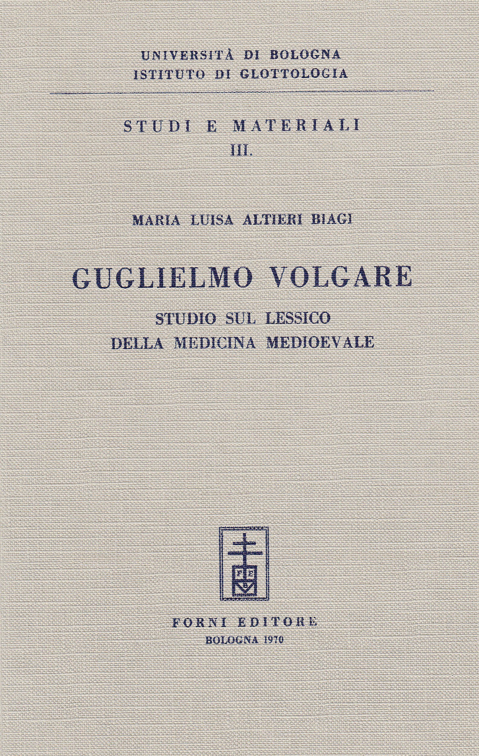TITOLO/DENOMINAZIONE: Guglielmo Volgare. Studio sul lessico della medicina medioevale BUONE CONDIZIONI