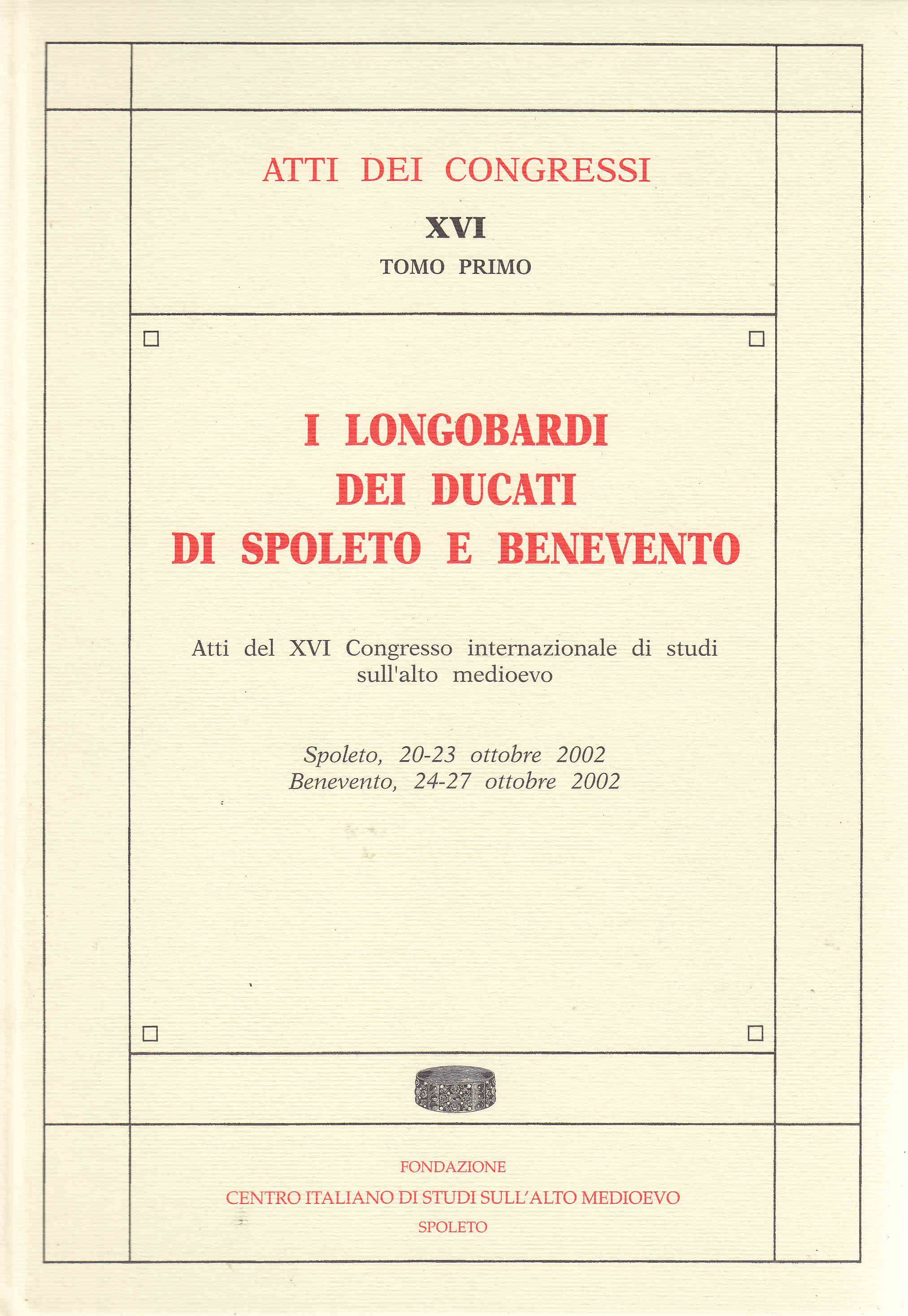 Atti del 16° Congresso Internazionale di Studio sull'Alto Medioevo (Spoleto, 20-23 ottobre 2002 - Benevento, 24-27 ottobre 2002).