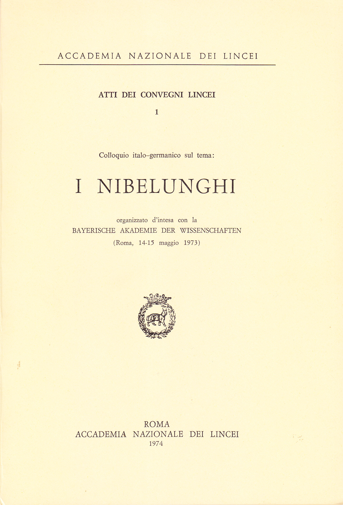 Colloquio italo-germanico sul tema: I Nibelunghi organizzato d'intesa con la Bayerische Akademie der Wissenschaften (Roma, 14-15 maggio 1973)