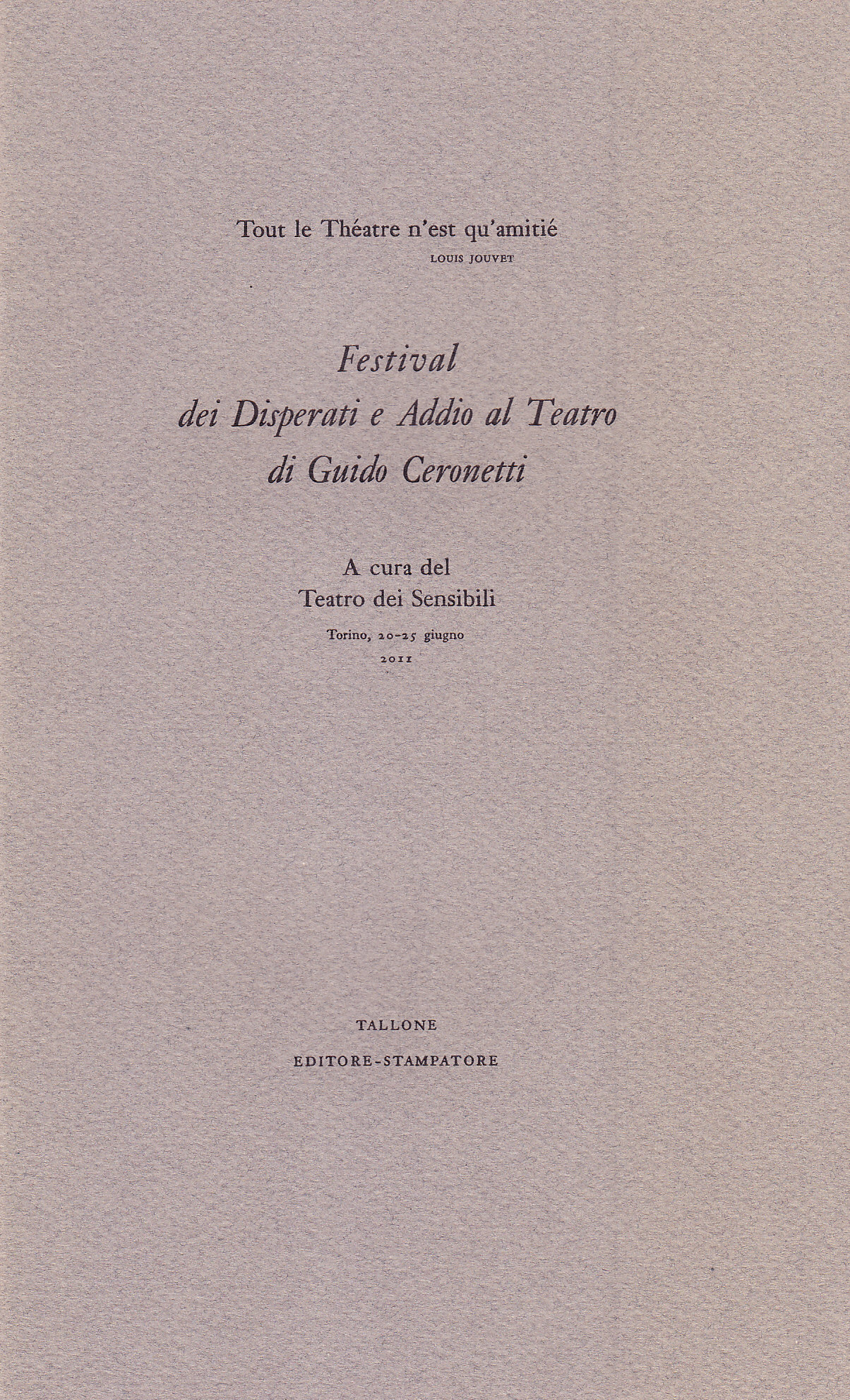 Traduzione dal francese di Guido Ceronetti, messa in scena in occasione del suo addio al Teatro (Teatro Gobetti di Torino, 20-25 giugno 2011).