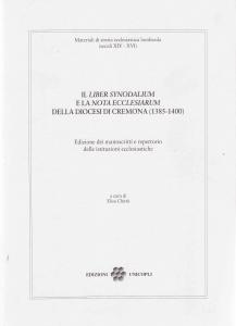 Il volume presenta l'edizione di due interessanti fonti documentarie tardo-trecentesche - Il Liber Synodalium, conservato all'Archivio Storico Diocesano e la Nota ecclesiarum, conservata all'Archivio Storico della prepositura di Sant'Agata - che permettono di avere un quadro abbastanza completo delle istituzioni ecclesiastiche della diocesi di Cremona sullo scorcio del XIV secolo.