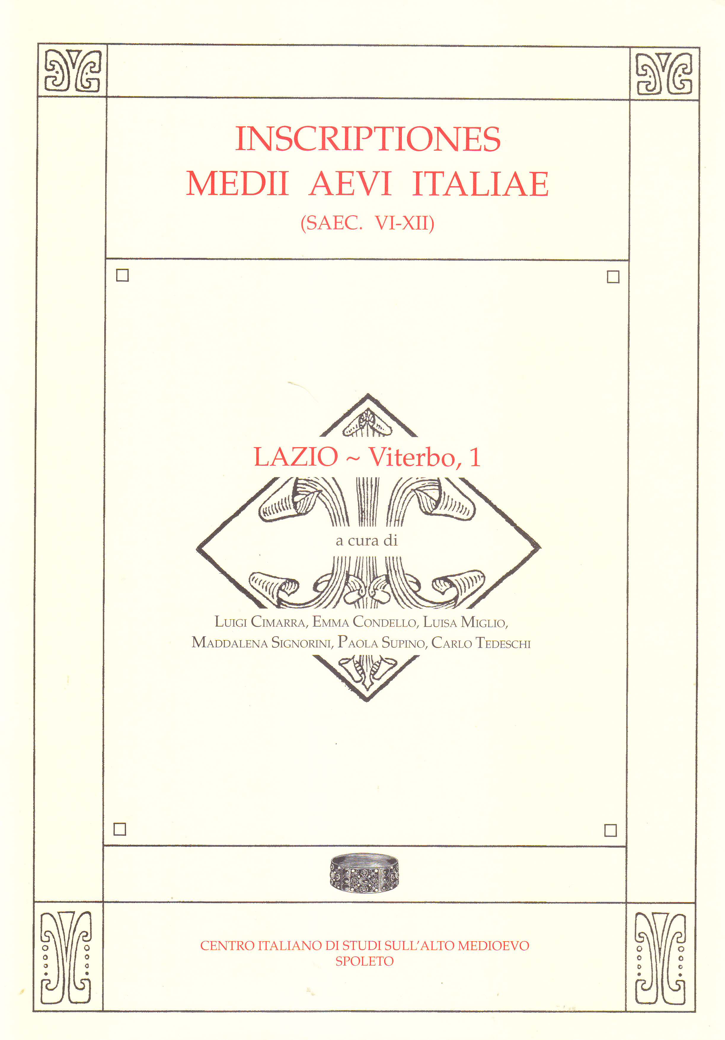 G. Cavallo e L. Pani Ermini, Presentazione - P. Supino Martini, Introduzione - Castel Sant’Elia a cura di L. Miglio - Civita Castellana a cura di L. Cimarra, P. Supino e C. Tedeschi - Nepi a cura di E. Condello e M. Signorini - Ronciglione a cura di E. Condello - S. Eusebio a cura di C. Tedeschi - Sutri a cura di L. Miglio - Abbreviazioni - Abbreviazioni periodici - Opere citate - Indice dei nomi di persona - Indice dei nomi di luogo - Indice delle materie - Indice cronologico - Indice delle fonti manoscritte.