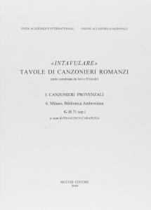 "Intavulare". Tavole di canzonieri romanzi. Canzonieri provenzali 6. Milano, Biblioteca Ambrosiana G (R 71 sup.)