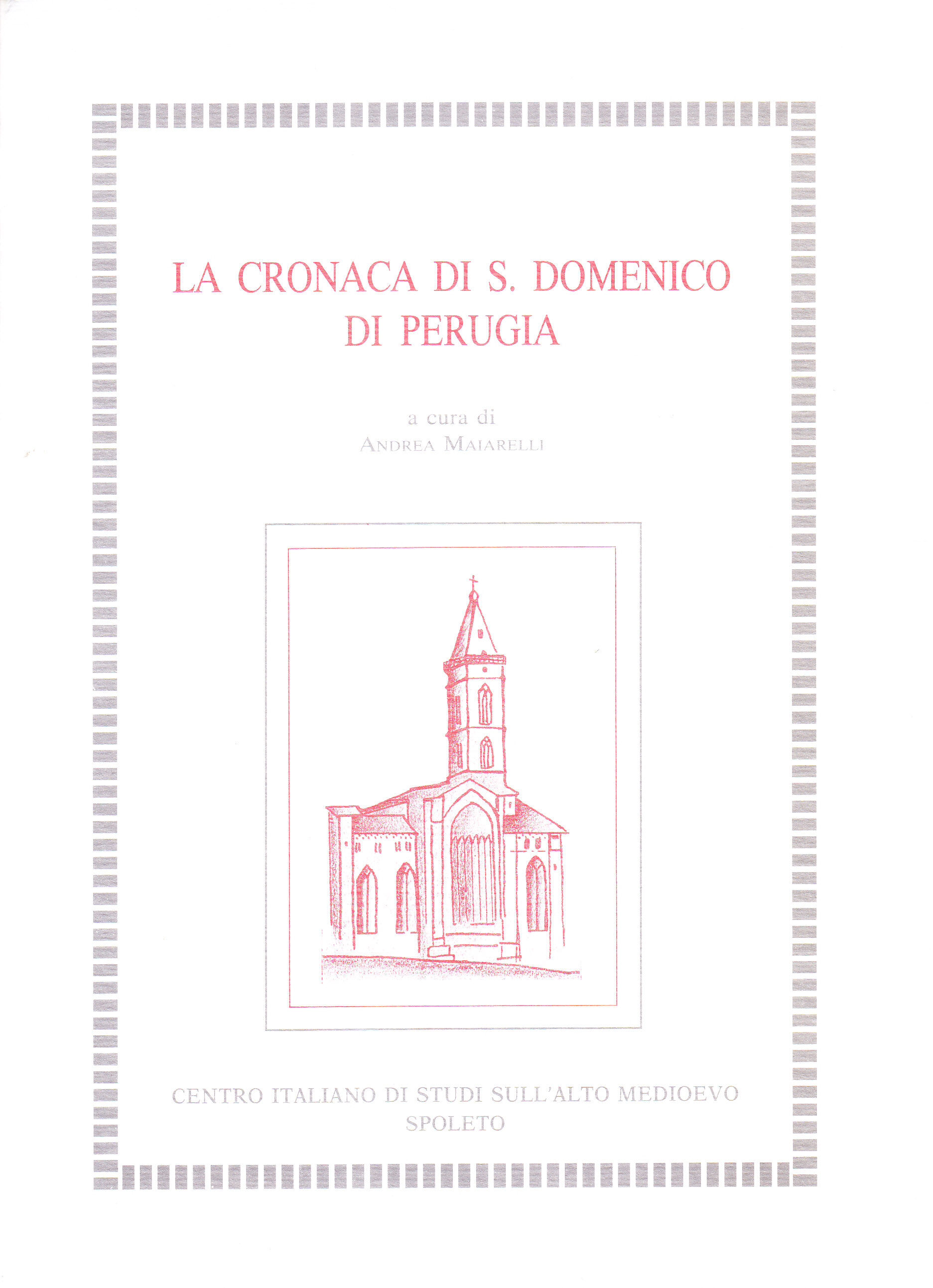 Indice: Prefazione - Introduzione - 1. Premessa - 2. Descrizione del manoscritto - 3. Le mani e i testi - 4. La composizione originaria del manoscritto - 5. Il posto della Cronaca perugina nella tradizione cronachistica dell'Ordine - 6. Il rapporto fra due cronache « gemelle » - 7. La cronaca come fonte storiografica - 8. Un convento allo specchio della sua cronaca: le virtù dei frati - Indice delle opere citate - Chronica ordinis fratrum predicatorum perusini conventus - I. Maestri dell'ordine - II. Cardinali dell'ordine - III. Frati - IV. Conversi - Indice dei nomi di persona e di luogo - Tavole.