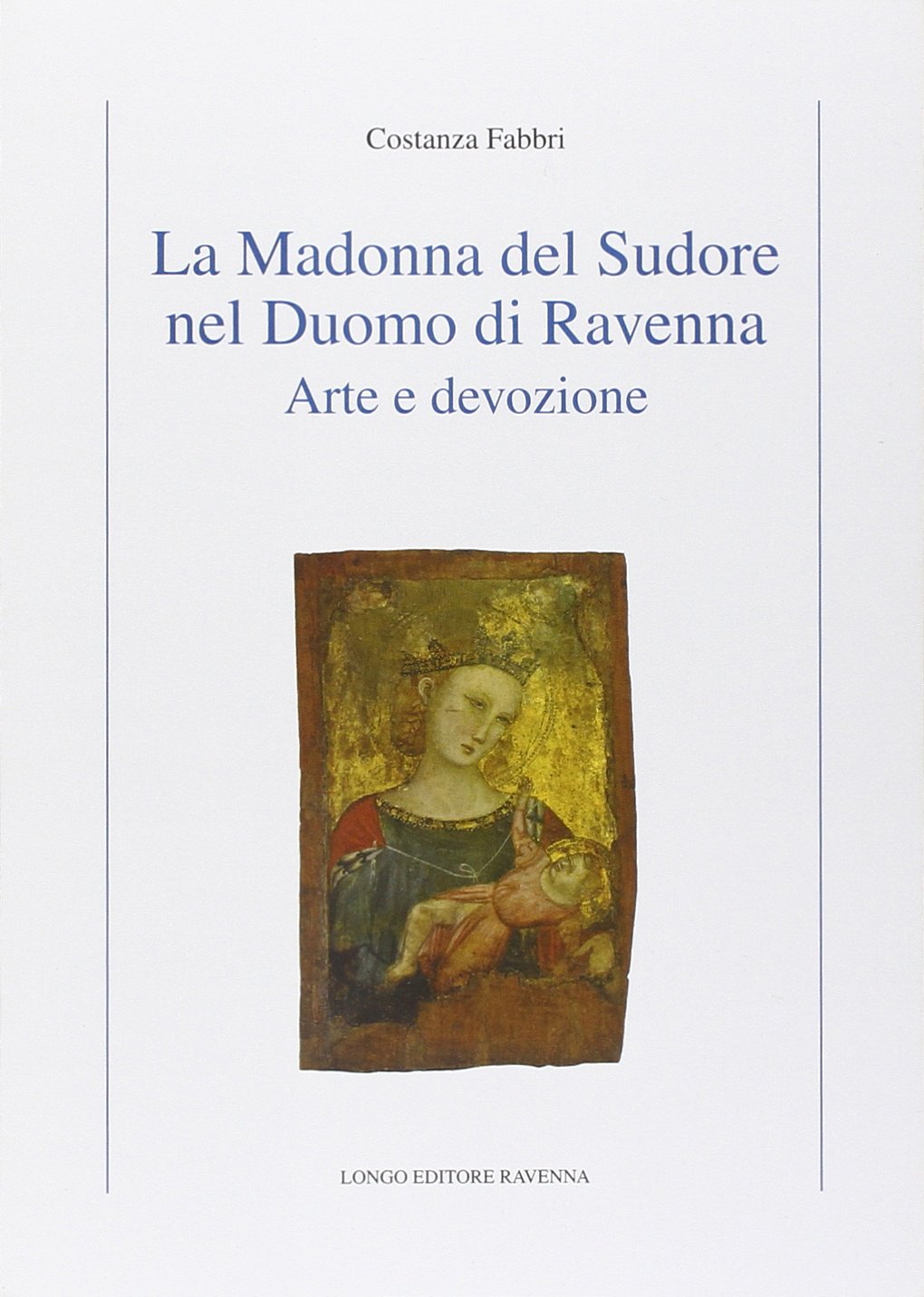 Nota ai ravennati per il plurisecolare culto e per le stampe largamente diffuse in città, sino alla metà del Novecento la Madonna del Sudore era sempre rimasta legata a considerazioni eminentemente devozionali. Ricondotta già da Cesare Brandi alla scuola riminese del Trecento, l'opera viene in questa sede studiata e definitivamente attribuita attraverso una rigorosa contestualizzazione storico-artistica e documentaristica. Unicum nel novero delle coeve tavole mariane (grazie a quel suo perfetto armonizzare il gusto avignonese al retaggio tardo-bizantino), di questa tavoletta sino ad oggi si conosceva solo il recto. Il verso viene pubblicato per la prima volta in questa sede.