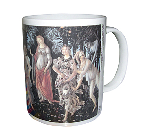 Tazza/mug con riproduzione de La Primavera di Botticelli (1482 circa, Galleria degli Uffizi, Firenze).
