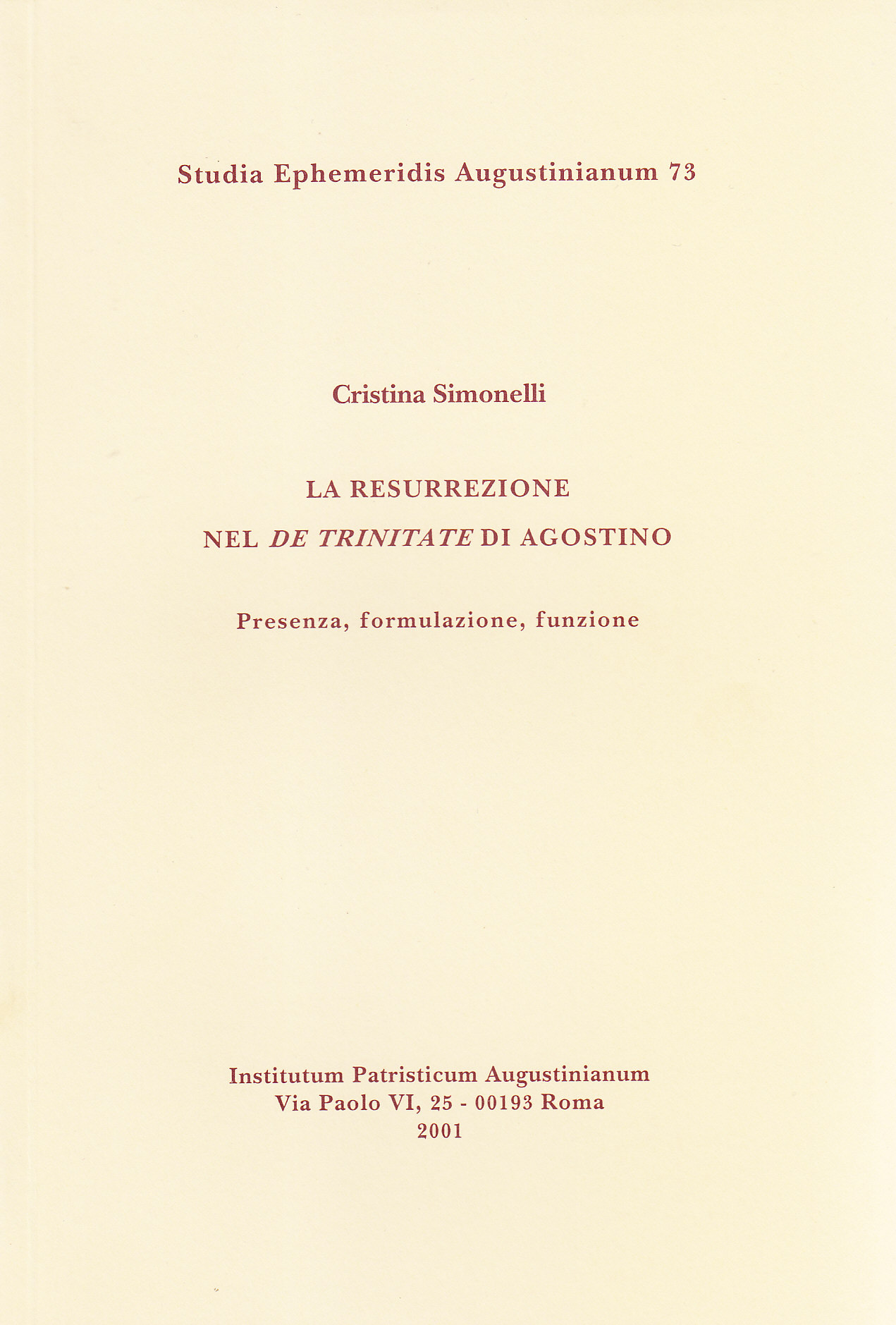 47 ANALISI DELLE TESTIMONIANZE SULLA RESURREZIONE NEL DE TRINITATE: LIBRI VIII-XV