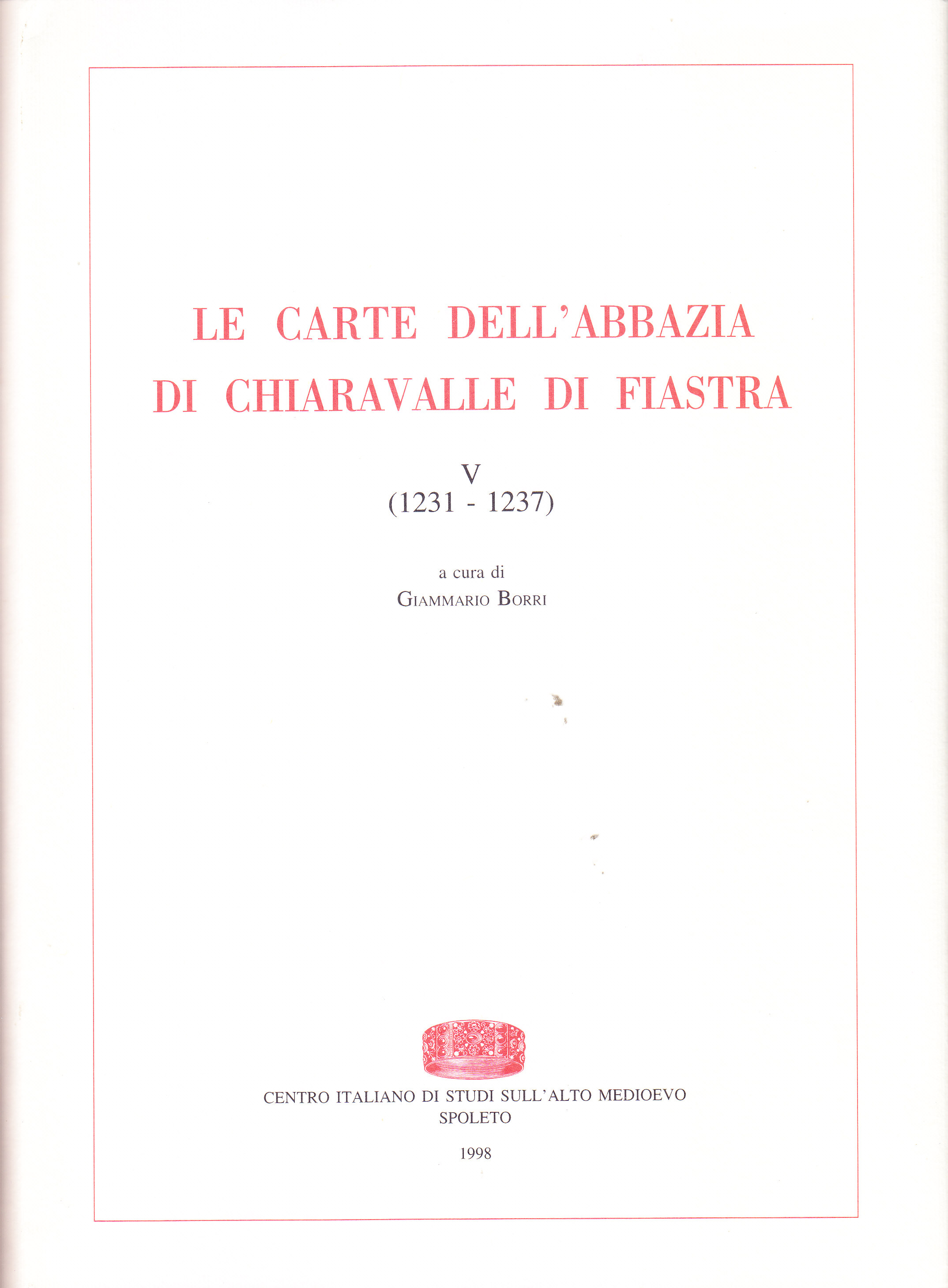 Indice: Introduzione - Le carte dell'abbazia di Chiaravalle di Fiastra - Indice dei nomi propri e delle cose notevoli - Indice dei notai - Concordanza tra numero d'inventario e numero d'edizione - Indice delle fonti manoscritte e delle opere a stampa.