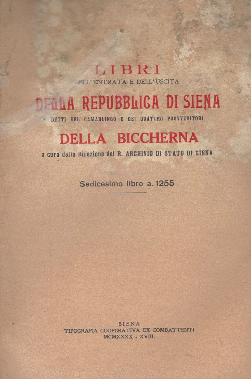 TITOLO/DENOMINAZIONE: Libri dell'entrata e dell'uscita della Repubblica di Siena, detti del Camarlingo e dei Quattro Provveditori della Biccherna. Sedicesimo libro a. 1255