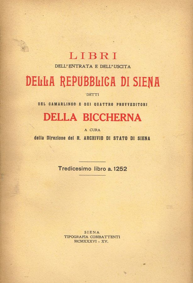 TITOLO/DENOMINAZIONE: Libri dell'entrata e dell'uscita della Repubblica di Siena detti del Camarlingo e dei Quattro Provveditori della Biccherna. Tredicesimo libro a. 1252