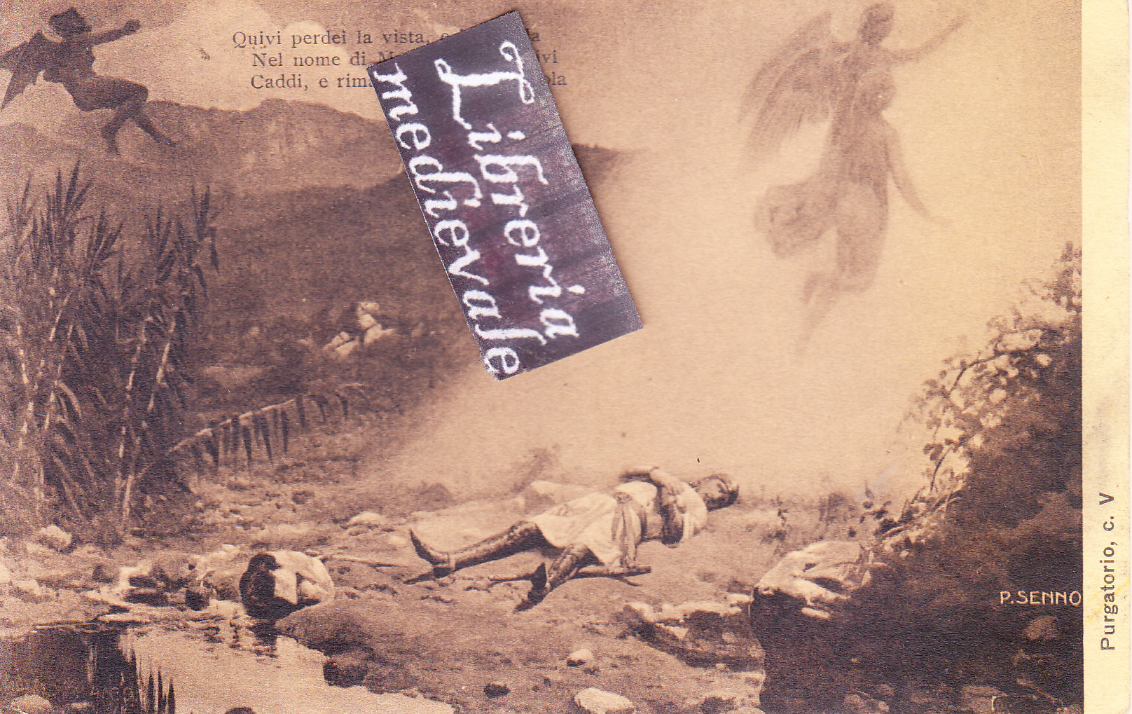 TITOLO/DENOMINAZIONE: Purgatorio, c. V. Quivi perdei la vista, e la parola Nel nome di Maria finii; e quivi Caddi, e rimase la mia carne sola - CARTOLINA