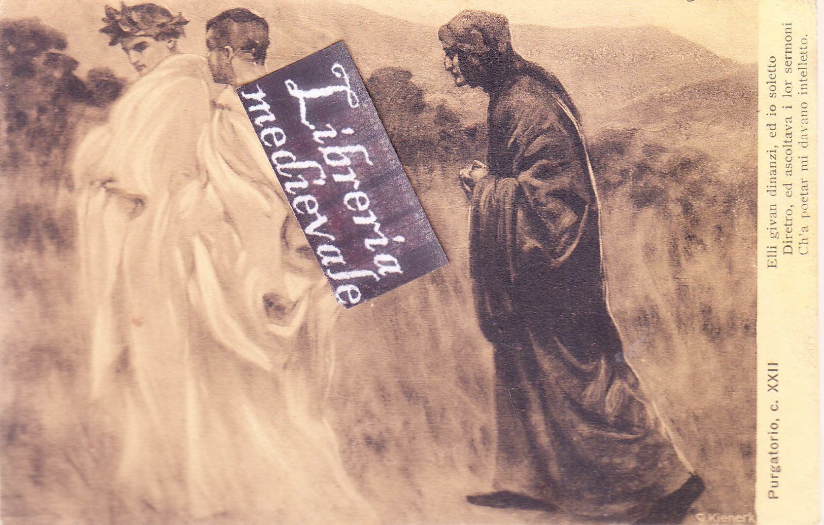 TITOLO/DENOMINAZIONE: Purgatorio, c. XXII. Elli givan dinanzi, ed io soletto Diretro, ed ascoltava i lor sermoni Ch'a poetar mi davano intelletto - CARTOLINA