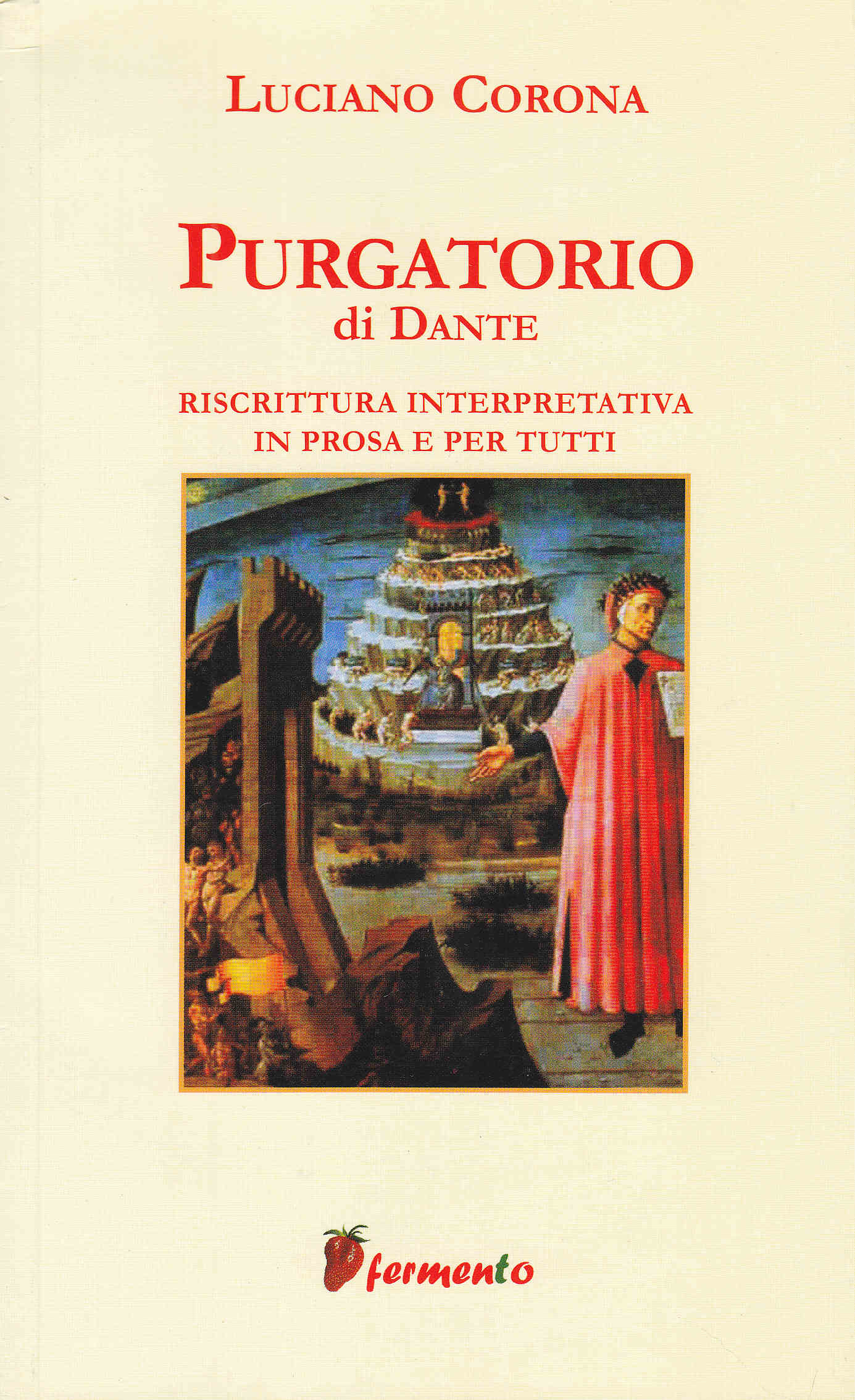 Una montagna altissima che si eleva verso l'alto, come la voragine infernale sprofonda negli abissi. Il regno della speranza, come l'Inferno è quello della disperazione. La luce ritrovata e il tempo di nuovo scandito dal sorgere e dal tramontare del Sole, contrapposti al buio e alla fissità eterna della dannazione. La sofferenza di pene non meno terribili di quelle delle anime perdute per sempre, ma una serenità di fondo che dipende dalla consapevolezza che tali orrori un giorno finiranno e, al loro posto, ci sarà la perfetta felicità. E, ancora una volta, il lavoro di Luciano Corona, la sua "riscrittura interpretativa", permette di seguire il poeta e la sua guida nella scalata al monte della purificazione.
