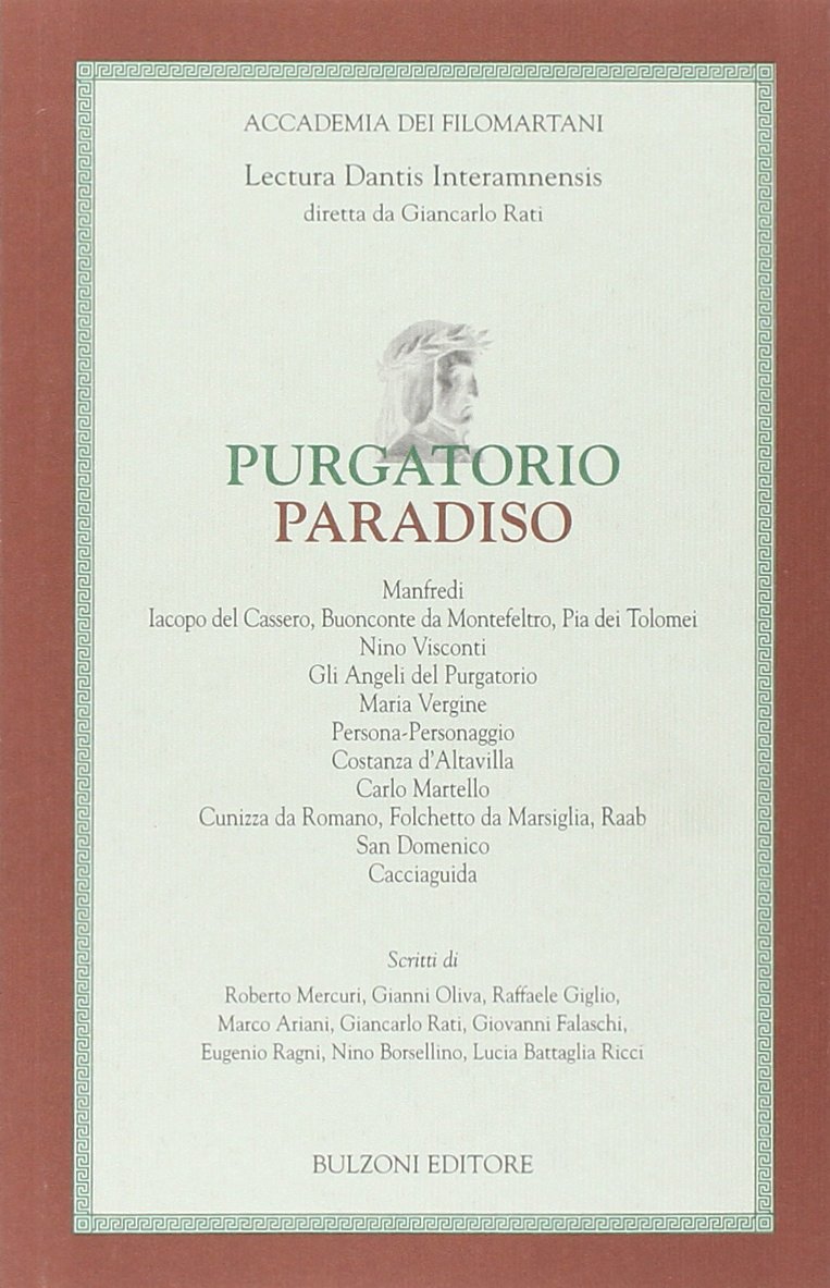Manfredi, Iacopo del Cassero, Buonconte da Montefeltro, Pia de Tolomei, Nino Visconti, Gli Angeli del Purgatorio, Maria Vergine, Persona-Personaggio, Costanza d'Altavilla, Carlo Martello, Cunizza da Romano, Folchetto da Marsiglia, Raab, San Domenico, Cacciaguida