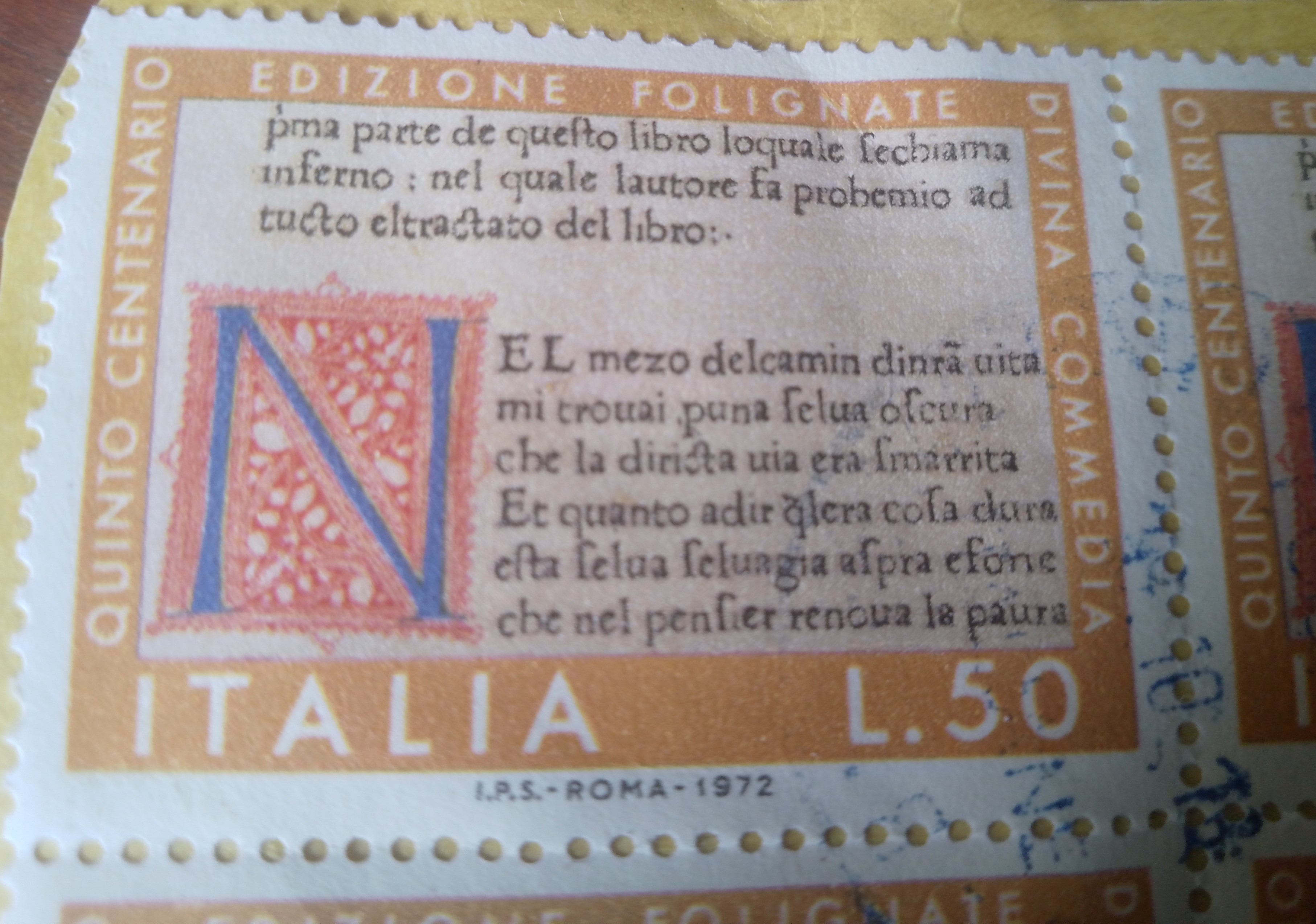 TITOLO/DENOMINAZIONE: Quinto Centenario Edizione Folignate Divina Commedia - FRANCOBOLLO ITALIA L. 50