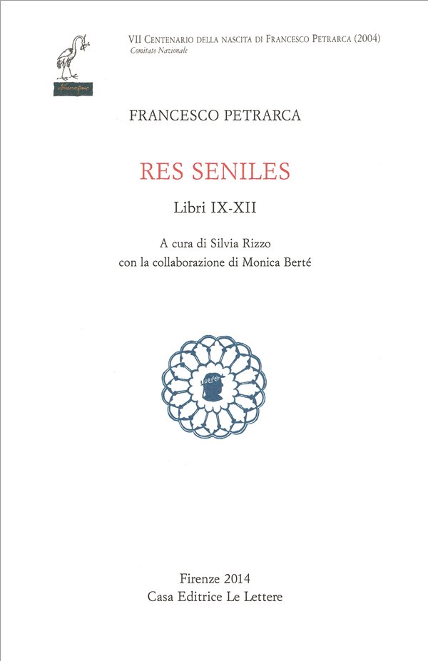 Nell'ambito dell'edizione di tutto Petrarca promossa dalla Commissione per l'Edizione Nazionale in occasione del centenario del 2004 esce il terzo volume delle Senili. Il testo latino, completamente rinnovato anche rispetto alla recente edizione curata da Elvira Nota per "Les Belles Lettres", è accompagnato, come nei precedenti volumi, da un apparato delle fonti e da un apparato critico, nel quale si dà conto delle varianti d'autore nonché dei problemi testuali più rilevanti, ed ha a fronte una nuova traduzione italiana corredata da note esegetiche, che non di rado recano novità in fatto di datazioni, identificazioni, rapporti con i codici della biblioteca petrarchesca e relative postille, particolarità del suo latino. Meritano di essere segnalati in questo volume i nuovi elementi che emergono da una più accurata considerazione del testo della missiva di Sen. XI 7 circa il seguito delle vicende del copista Giovanni Malpaghini, di cui in due epistole del libro quinto Petrarca aveva narrato il primo clamoroso tentativo di fuga. Questo terzo volume include lettere di grande importanza, come il dittico del libro IX sulla questione della sede pontificia o quello del libro XII contro i medici e la medicina, o come il lungo trattato intessuto di citazioni bibliche per un amico che si è fatto monaco (X 1), o il dettagliato racconto autobiografico ispirato a un confronto fra i tempi passati e quelli presenti (X 2), o ancora la commossa evocazione del lutto per la perdita del nipotino Francesco (X 4). A fronte dei libri IX e XII, costituiti solo da due lettere, l'XI ne comprende ben 17, in armonia con la dichiarazione dell'autore di voler scrivere da ora in poi solo epistole brevi, subito peraltro disattesa, per esempio con l'appassionata difesa del generale dell'ordine francescano Tommaso da Frignano (XI 12) o con la narrazione della sincope che interruppe il viaggio a Roma per incontrare il papa (XI 17). Da segnalare infine il tour de force della XI 11, composta di 172 definizioni della vita formate da sostantivo e aggettivo o da sostantivo e genitivo, che per questo suo singolare carattere godette di enorme fortuna e circolò come pezzo a sé stante nella antologie dell'epoca.