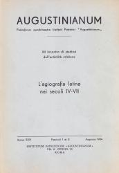 Augustinianum Annus XXIV, Fasciculus 1 et 2, Augustus 1984. L'agiografia latina nei secoli IV-VII |