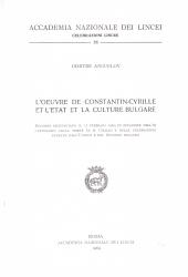 L'oeuvre de Constantin-Cyrille et l'etat et la culture bulgare
