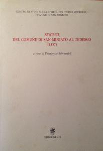 Il testo dello Statuto è diviso in cinque libri di cui il primo riguarda i pubblici magistrati, il secondo le cause criminali, il terzo le questioni civili, il quarto le mansioni del capitano del popolo ed il quinto il sistema fiscale, le misure repressive nei confronti dei ghibellini e le leggi suntuarie. Il vol. comprende un'introduzione storico-metodologica (pp. 5-54) e tre appendici riguardanti altri statuti dello stesso comune (pp. 471-505). Infine si trovano l'indice degli antroponimi (pp. 509-15), l'indice dei toponimi (pp. 517-22) e l'indice analitico (pp. 523-38).