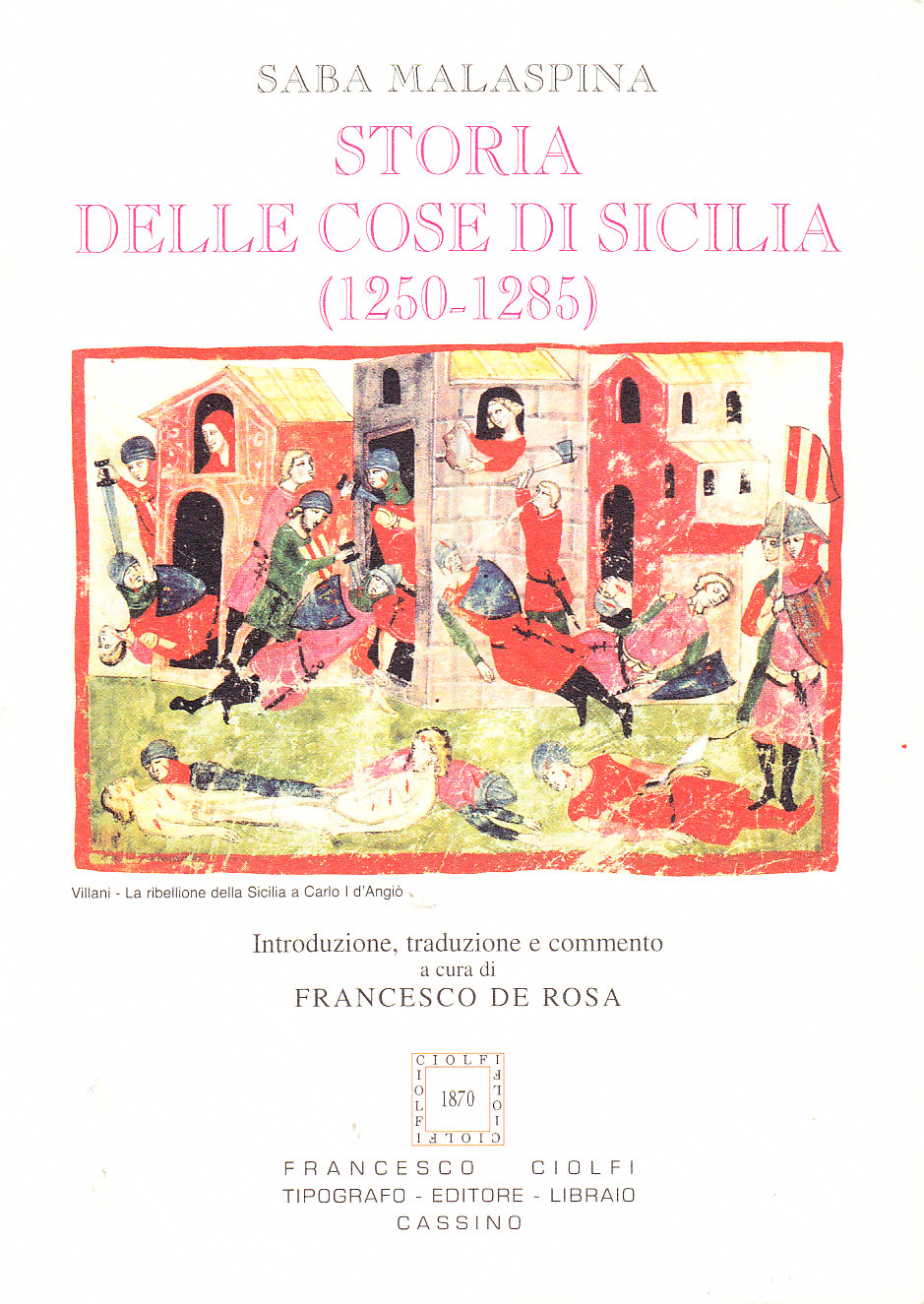 La Cronaca "Rerum Sicularum Historia" inizia dalla morte di Federico II e si conclude con quella di Carlo D'Angiò. Saba Malaspina, cronista e scrittore Medioevale (Secolo XIII), vissuto in Roma nella Curia Vaticana con Papa Martino IV e poi divenuto decano della chiesa di Mileto, fu testimone della ferocia dei seguaci di Carlo d'Angiò e delle stragi da loro perpetrate sui miseri abitanti siciliani. La sua Cronaca, essendo lui guelfo, è sicuramente di parte quando tratta delle vicende di Federico II, ma è obiettiva e imparziale nella descrizione dei fatti storici dell'epoca. Essa costituisce un documento insostituibile per la storia di quel tempo, particolarmente per lo spaccato che aprì le porte ai Vespri Siciliani e alla conquista degli Aragonesi della Sicilia.