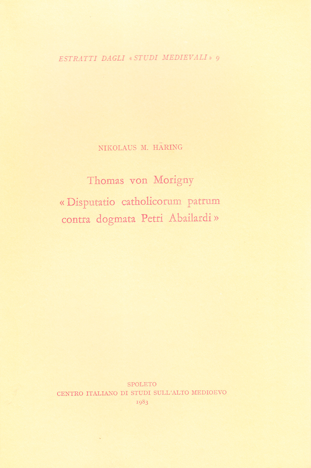 Thomas von Morigny "Disputatio catholicorum patrum contra dogmata Petri Abailardi"