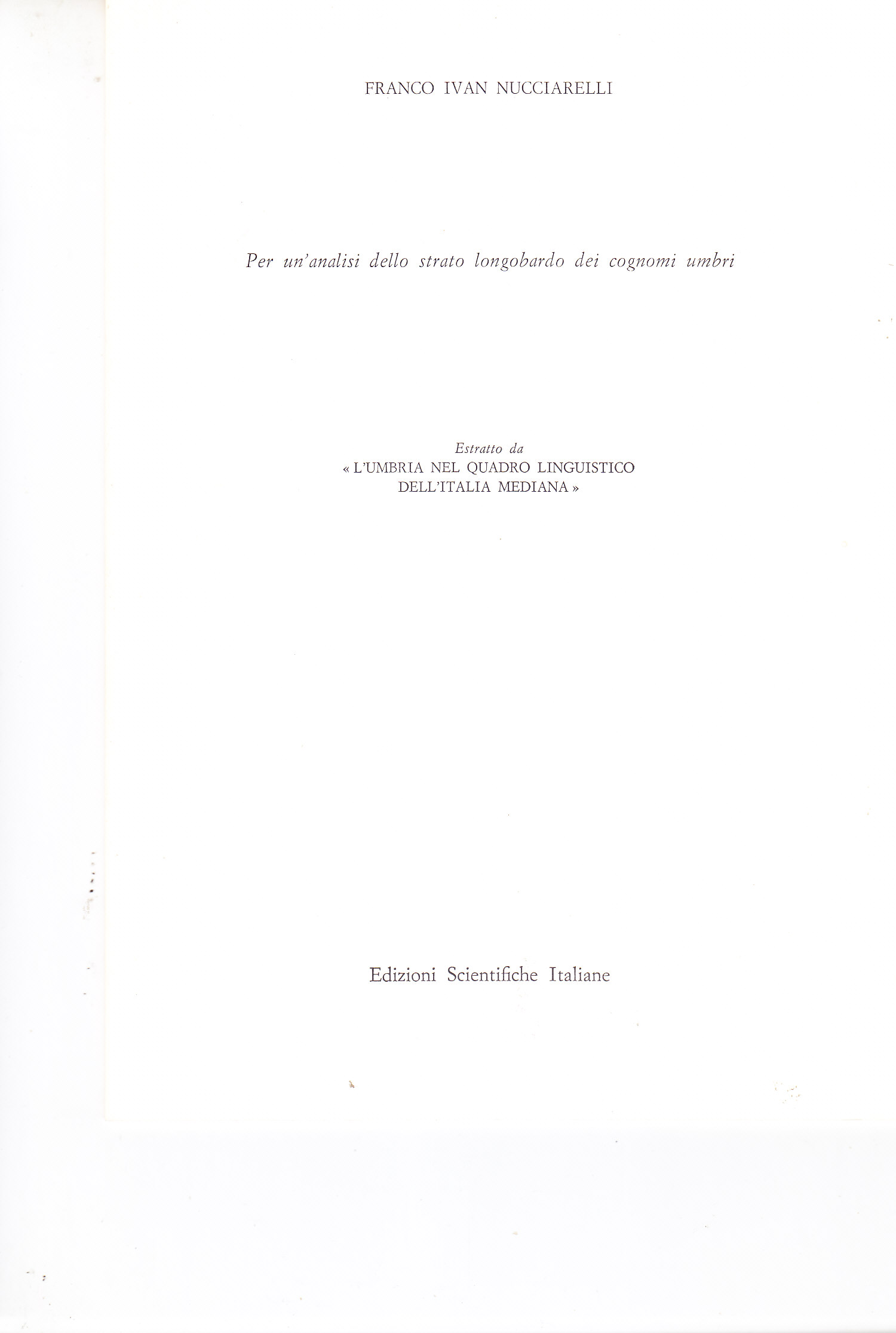 TITOLO/DENOMINAZIONE: Per un'analisi dello strato longobardo dei cognomi umbri
