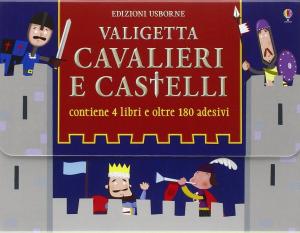 Quattro volumetti sul tema dei cavalieri e dei castelli, riuniti in una pratica valigetta per colorare, fare piccoli lavoretti creativi e giochini e divertirsi con gli adesivi.