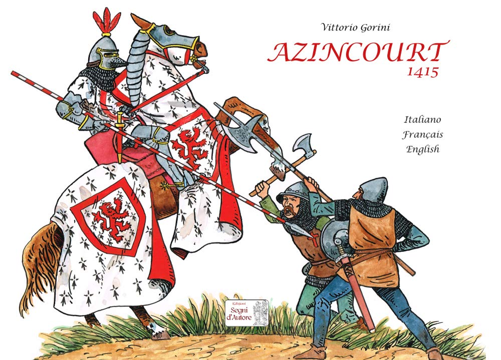 Il testo è scritto in tre lingue (italiano, francese e inglese) e disegnato da Vittorio Gorini, uno tra i maggiori esperti di Uniformologia. Oltre alla descrizione della battaglia di Azincourt e delle forze impegnate in campo, Gorini illustra ai lettori i nomi degli arcieri e dei cavalieri, protagonisti nello scontro armato, e il destino di ognuno di loro.