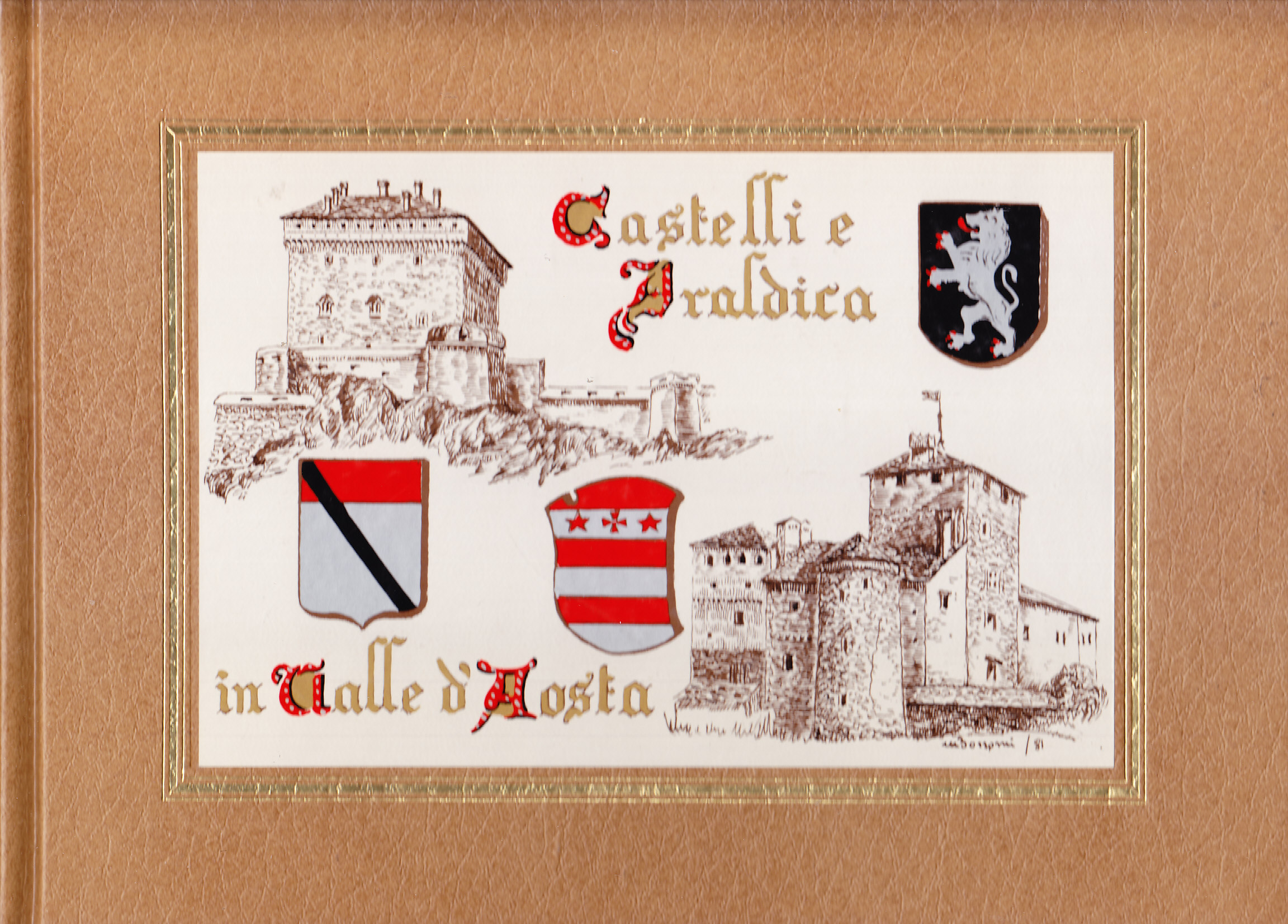 Un elegante volume che raccoglie tutti i castelli della Valle d'Aosta disegnati da Michele Bonomi con i particolari di camini, portali, comignoli, ecc. Nella seconda parte, gli stemmi a colori delle famiglie o casate nobili valdostane.