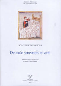 Scritto da Boncompagno da Signa intorno al 1240, al tramonto di una vita spesa accanitamente a indagare il mondo e a sperimentare il potere della parola, il trattatello De malo senectutis et senii, assolutamente originale e unico nella letteratura medievale sulla vecchiaia, è il condensato purissimo dell'alchimia delle diverse inclinazioni ed esperienze del suo autore. Un testamento culturale ed esistenziale di poche pagine, scandito come un inverosimile prontuario che concentra e miscela letteratura medica, Bibbia, linguistica, satira, novellistica, agiografia, ricordi favolosi, speranze estreme.
