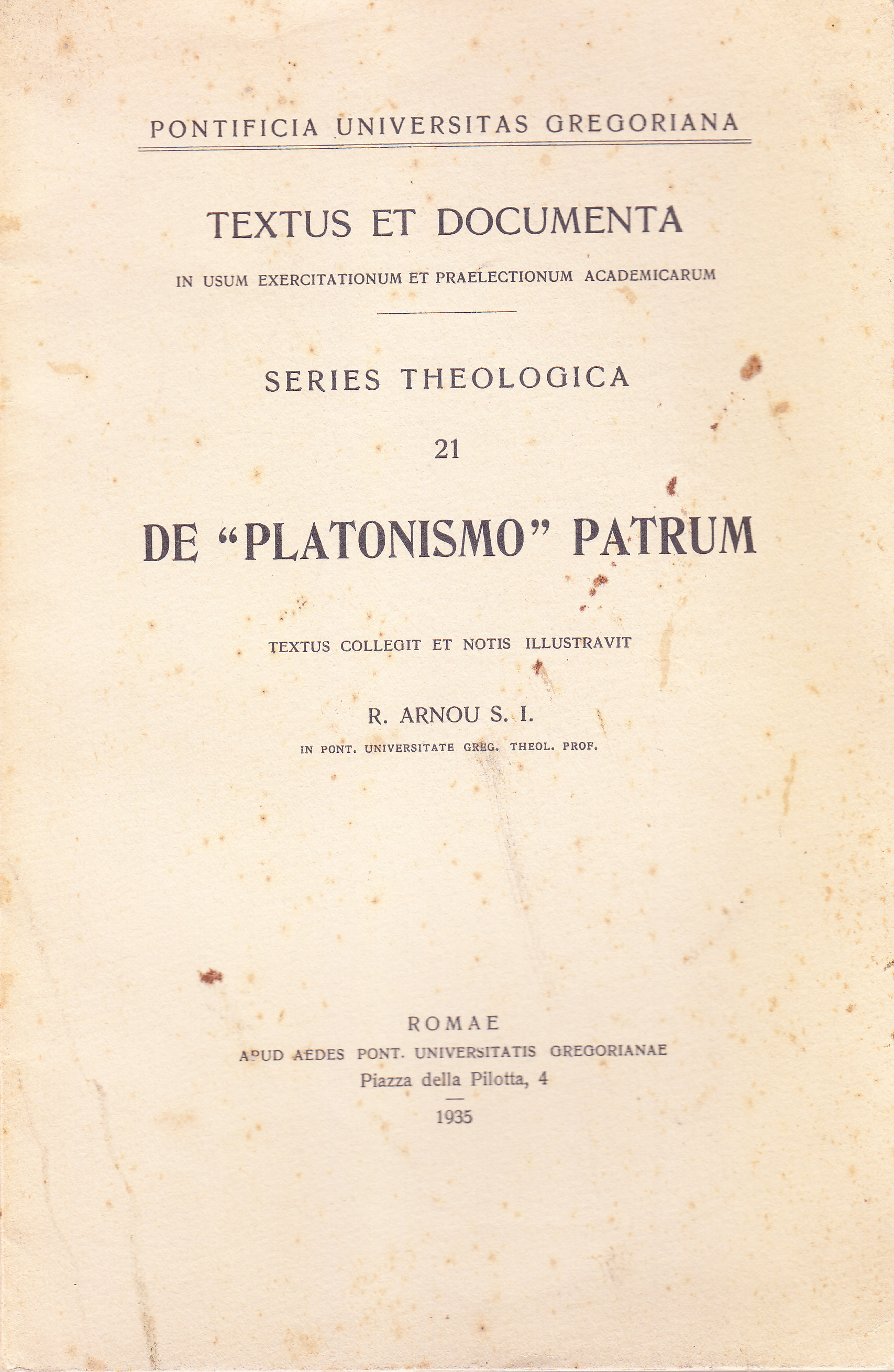 TITOLO/DENOMINAZIONE: De "Platonismo" patrum