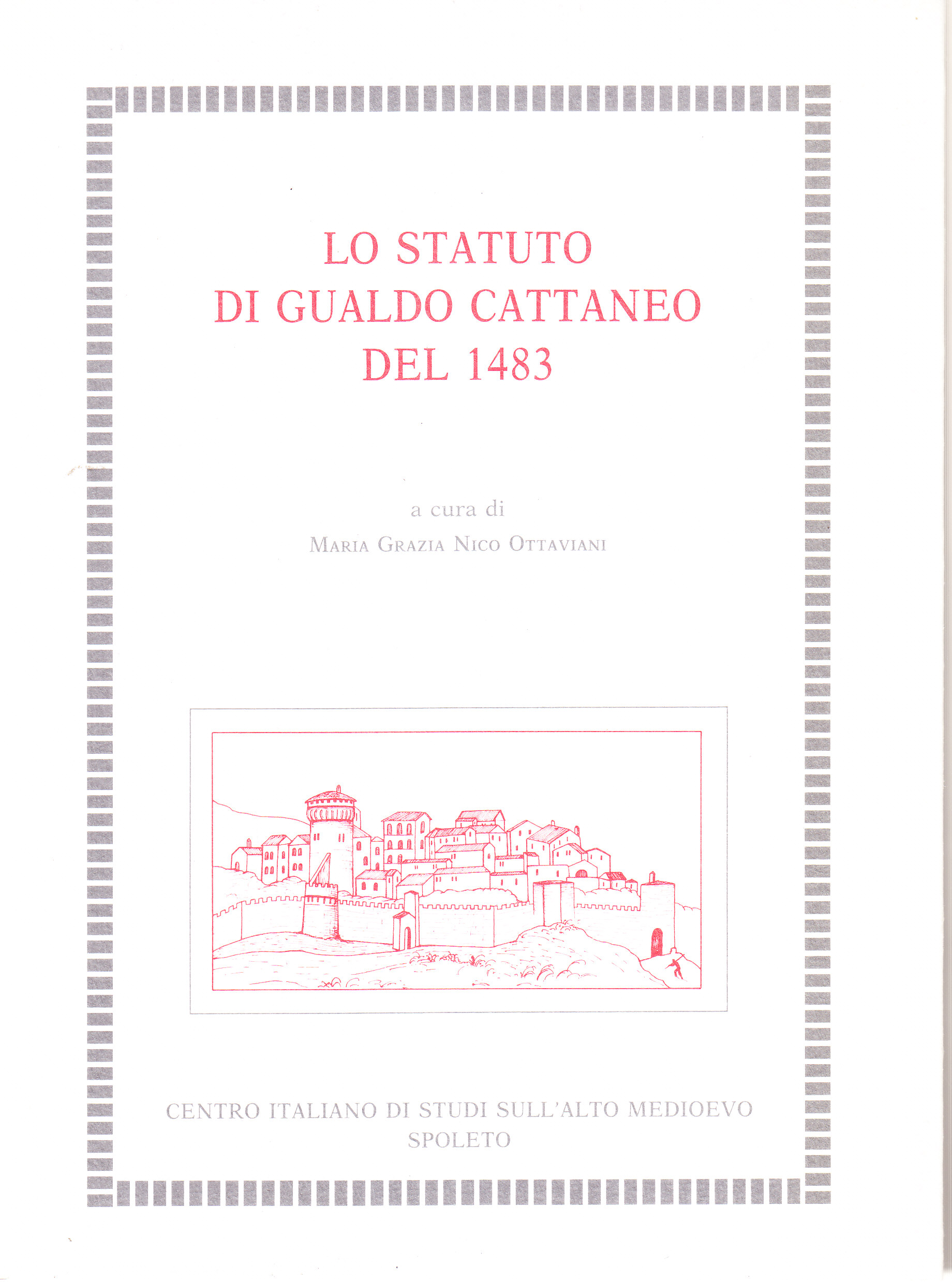 Indice: M. G. Nico Ottaviani, Prefazione alla ristampa - U. Nicolini, Presentazione - Introduzione - Gualdo Cattaneo nel Medioevo - Lo statuto del 1483 - Il manoscritto e l'edizione - Fonti archivistiche - Bibliografia e fonti edite - Statuto di Gualdo Cattaneo: Elenco delle rubriche - Liber primus - Liber secundus - Liber tertius - Liber quartus - Liber quintus - Tabula pedagii - Indice analitico.