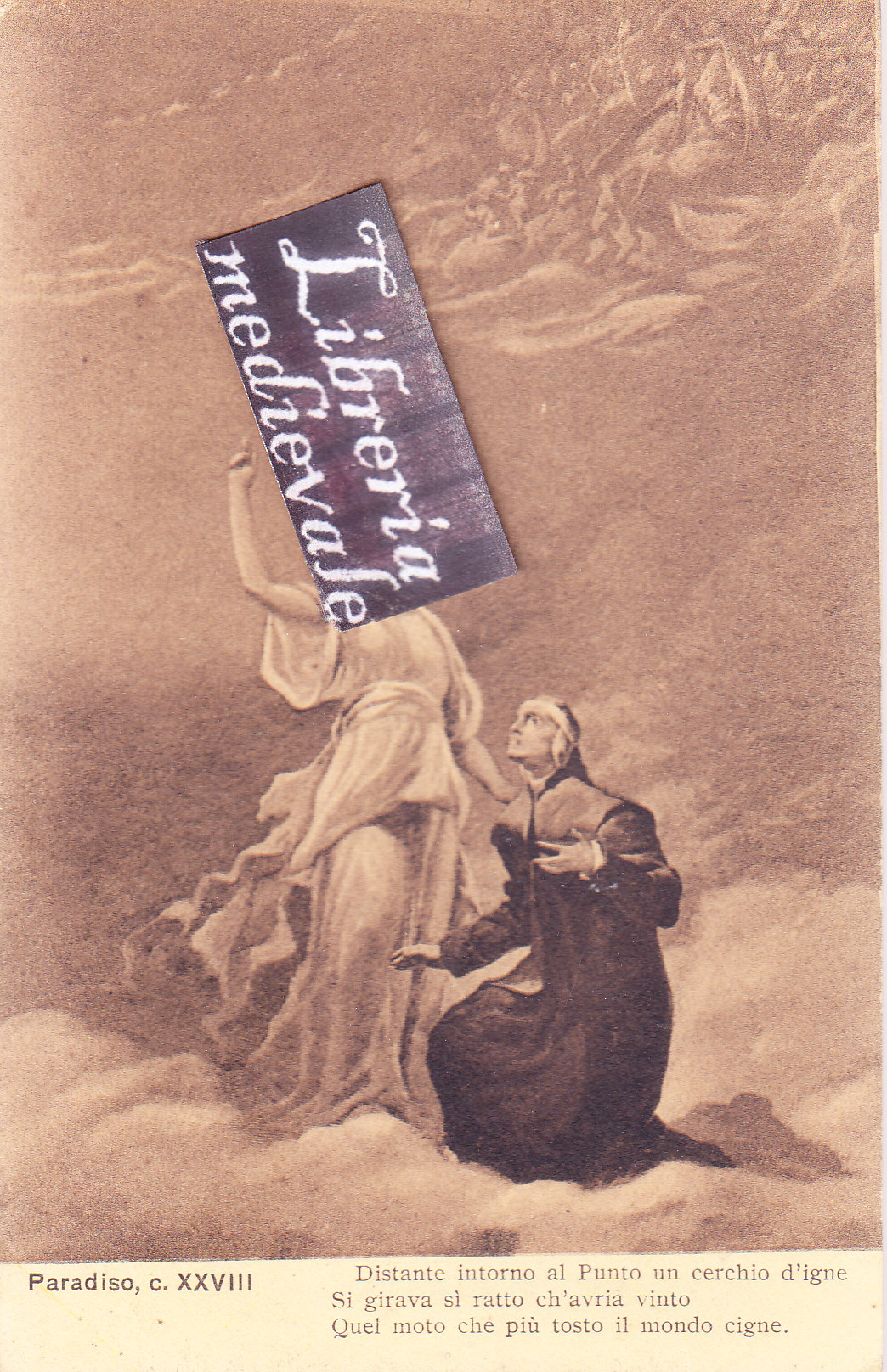 TITOLO/DENOMINAZIONE: Paradiso, c. XXVIII. Distante intorno al Punto un cerchio d'igne Si girava sì ratto ch'avria vinto Quel moto che più tosto il mondo cigne - CARTOLINA