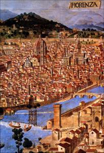 Grande blocco cartonato con riproduzione della Veduta detta della Catena di Francesco e Raffaello Petrini, con pagine a righe.
