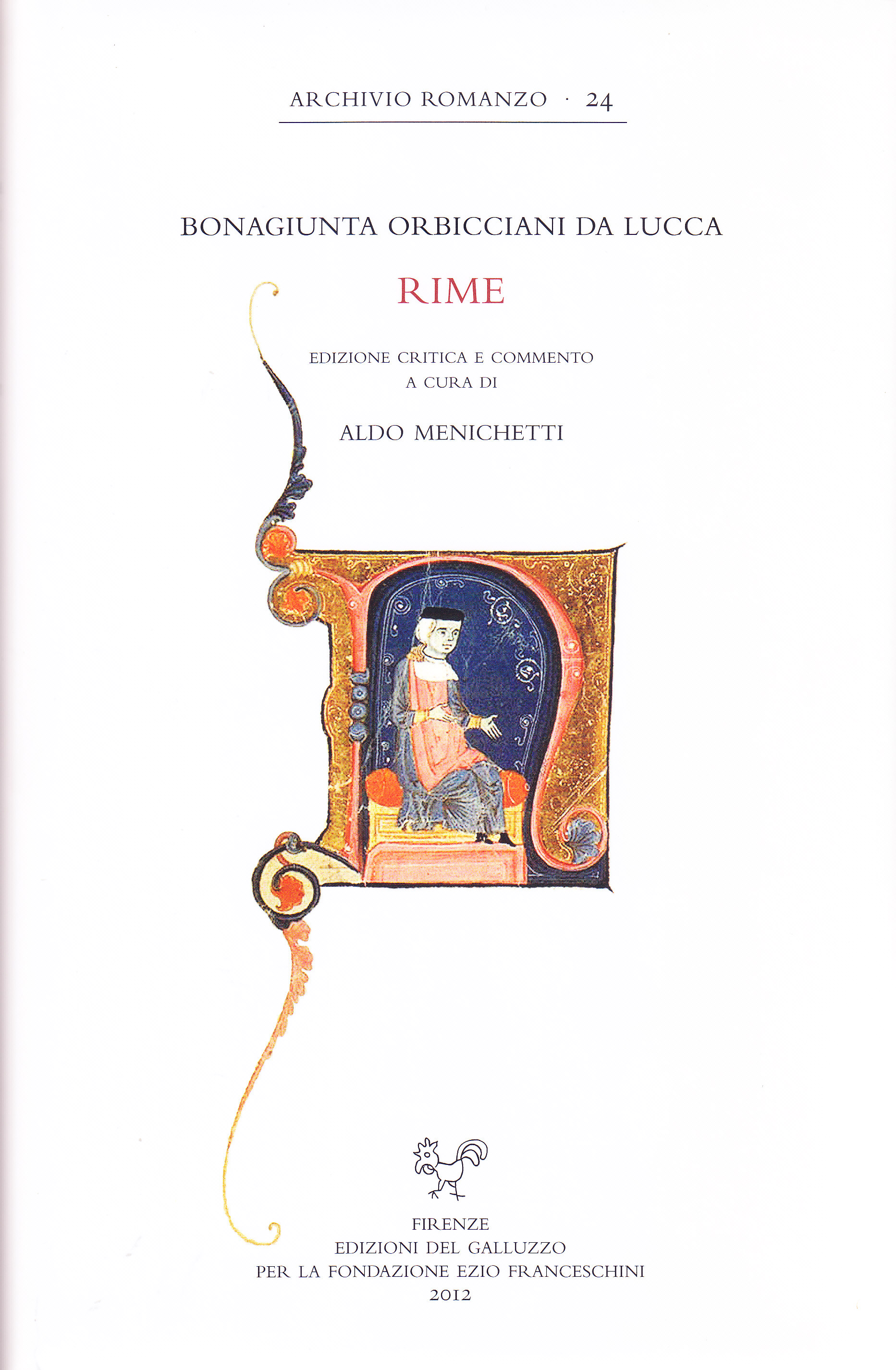 Questa nuova edizione consente una più precisa messa a fuoco storico- letteraria dell'Orbicciani e una complessiva rivalutazione del suo rilievo, specie sul versante della poesia politico-civile. Vicina alla radice siciliana e immune da influenze guittoniane, la sua 'maniera' affabile può aver incoraggiato alcuni rimatori, in particolare fiorentini, a illimpidire il loro stile; comunque sia, Dante - a cui non erano sfuggiti i tratti municipali della sua lingua - non disdegnò di trarre spunto da certe sue affermazioni sulla liberalità per correggerne la portata. Sul piano euristico le sue tematiche, così come le molte immagini che impreziosiscono i suoi versi, risultano tutt'altro che consunte. Notevolissime infine certe sue innovazioni tecniche, in particolare metriche: gli si deve fra l'altro l'invenzione di un verso di tredici sillabe.