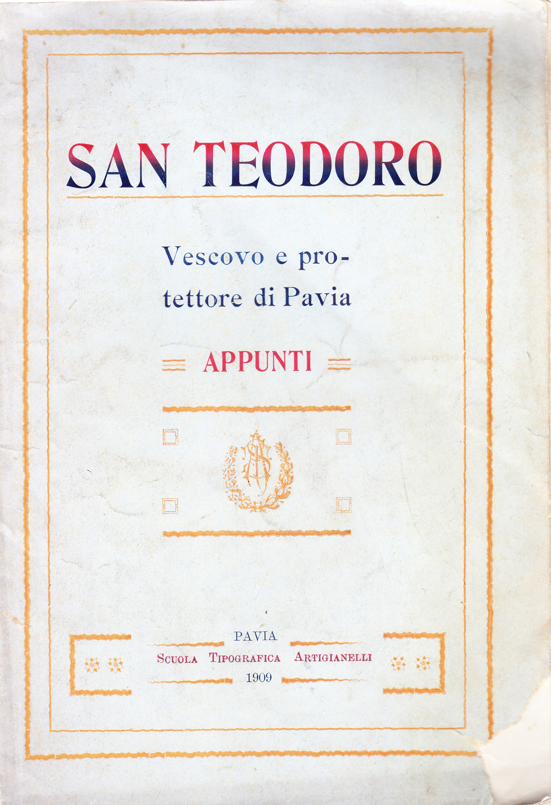 TITOLO/DENOMINAZIONE: San Teodoro. Vescovo e protettore di Pavia. Appunti