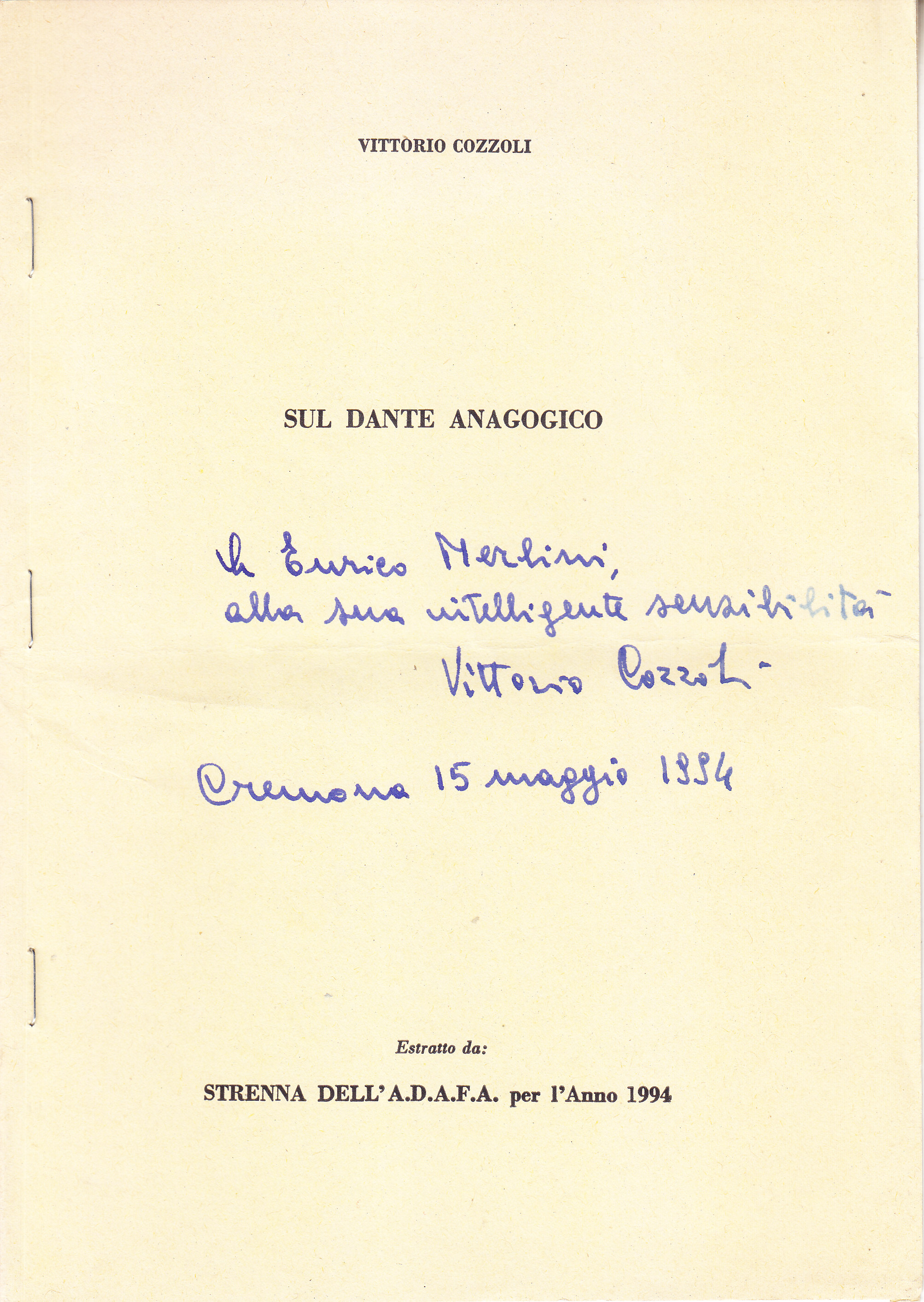TITOLO/DENOMINAZIONE: Sul Dante anagogico
